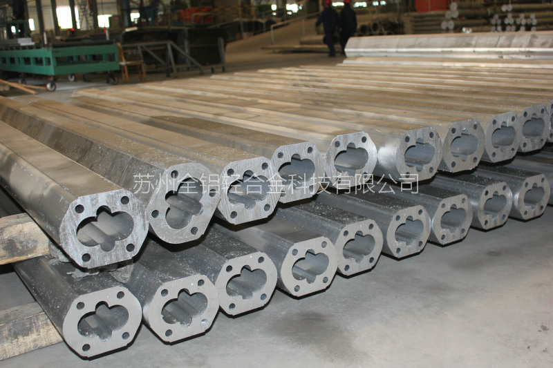 6082合金T4供應狀態,主要控制鋁棒上機溫度,擠壓速度、淬火溫度,特別是客戶對抗拉強度有嚴格的限制,達不到低標準或過標準客戶都不接受,并且在規定的時間內,經過加工后,還需時效硬化,從嚴格的意義上講,并不屬于真正的T4供應狀態,故在制訂擠壓工藝時在確保三溫的前提下,還應確保型材從模具出口到淬火之間(在線淬火)的時間間隔